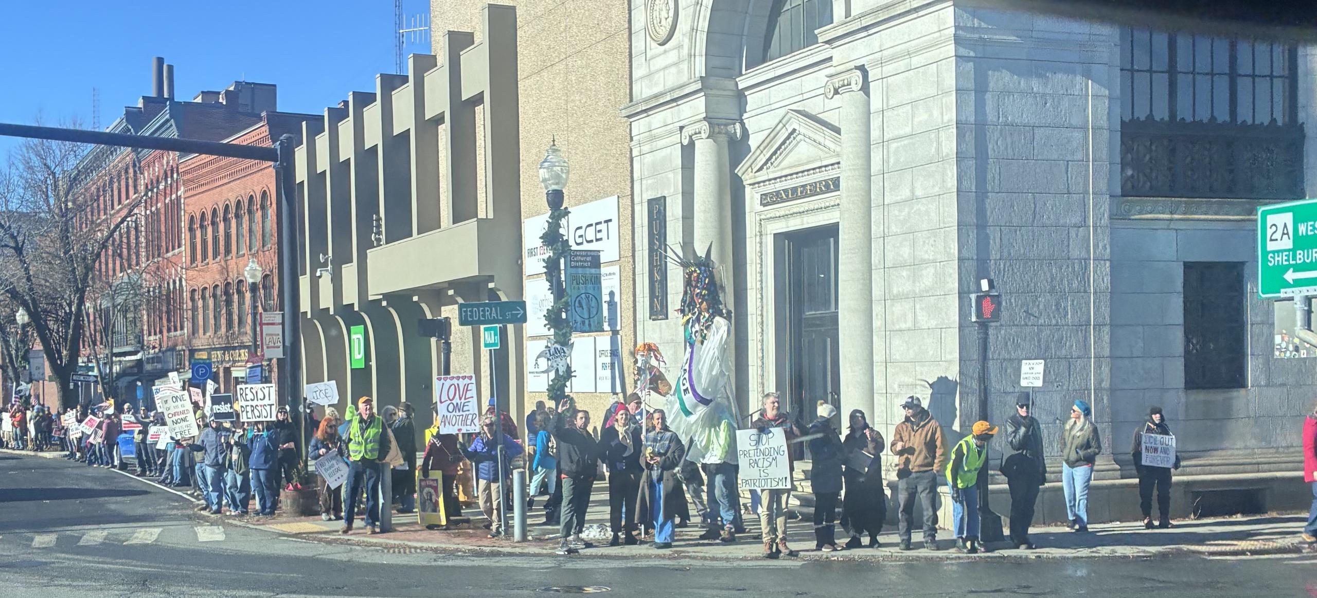 Hundreds gathered in downtown Greenfield in just one of the many demonstrations held this weekend mourning the loss of Renee Good in Minneapolis and ICE presence in the city.